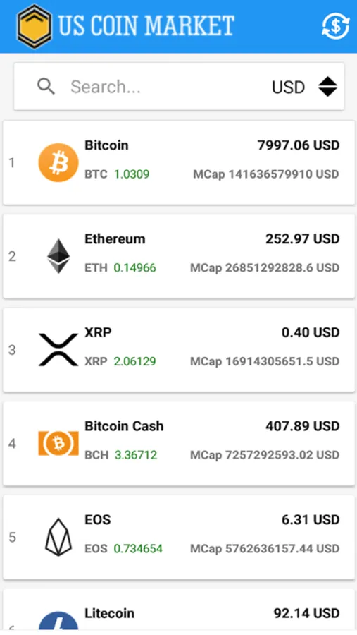 Track your crypto portfolio with the latest prices from coins, altcoins and tokens, such as Bitcoin, Ethereum, XRP Ripple, Litecoin, Bitcoin Cash, EOS, Tether, Binance BNB, Stellar, Cardano, Monero, Doge, and 2000+ more.