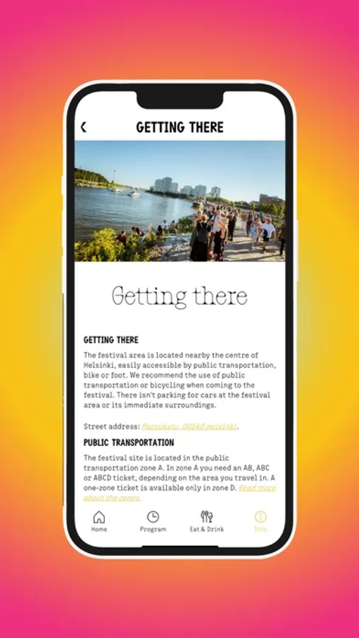 The official Flow Festival 2023 App allows you to browse through the festival program and create your own schedule for the festival weekend. The app also features the festival area map and practical information, timetables and a lot more.