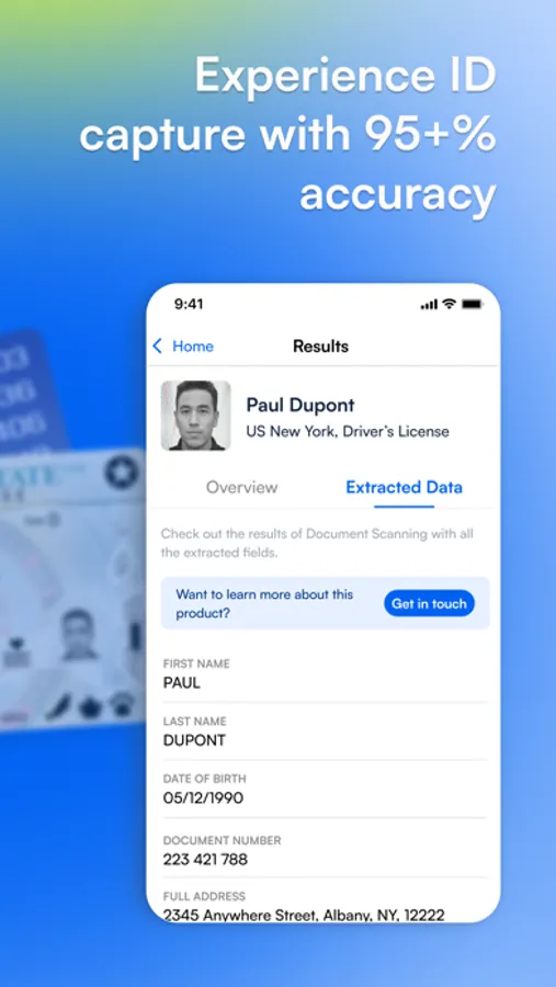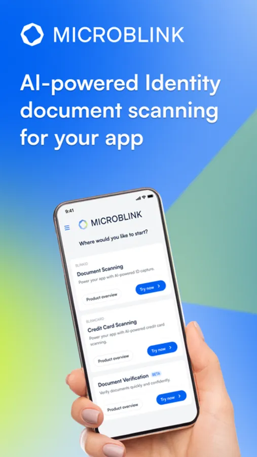 Try out BlinkID, Document Verification and BlinkCard with this demo app to extract data from: Various identity documents (IDs, driver’s licenses, passports, travel visas and others) and credit & bank cards