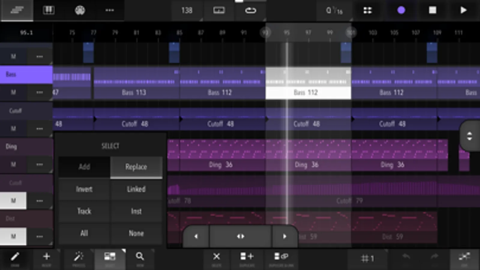 - Selection tools: Box, Same Note, Same Key, Same Beat Position, Invert, etc.