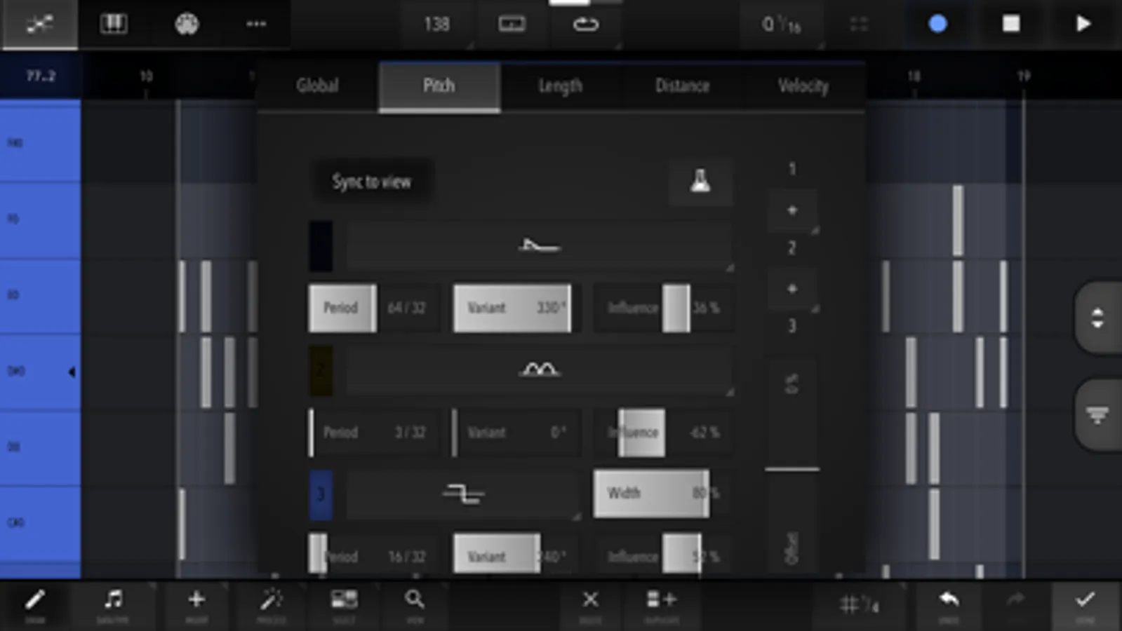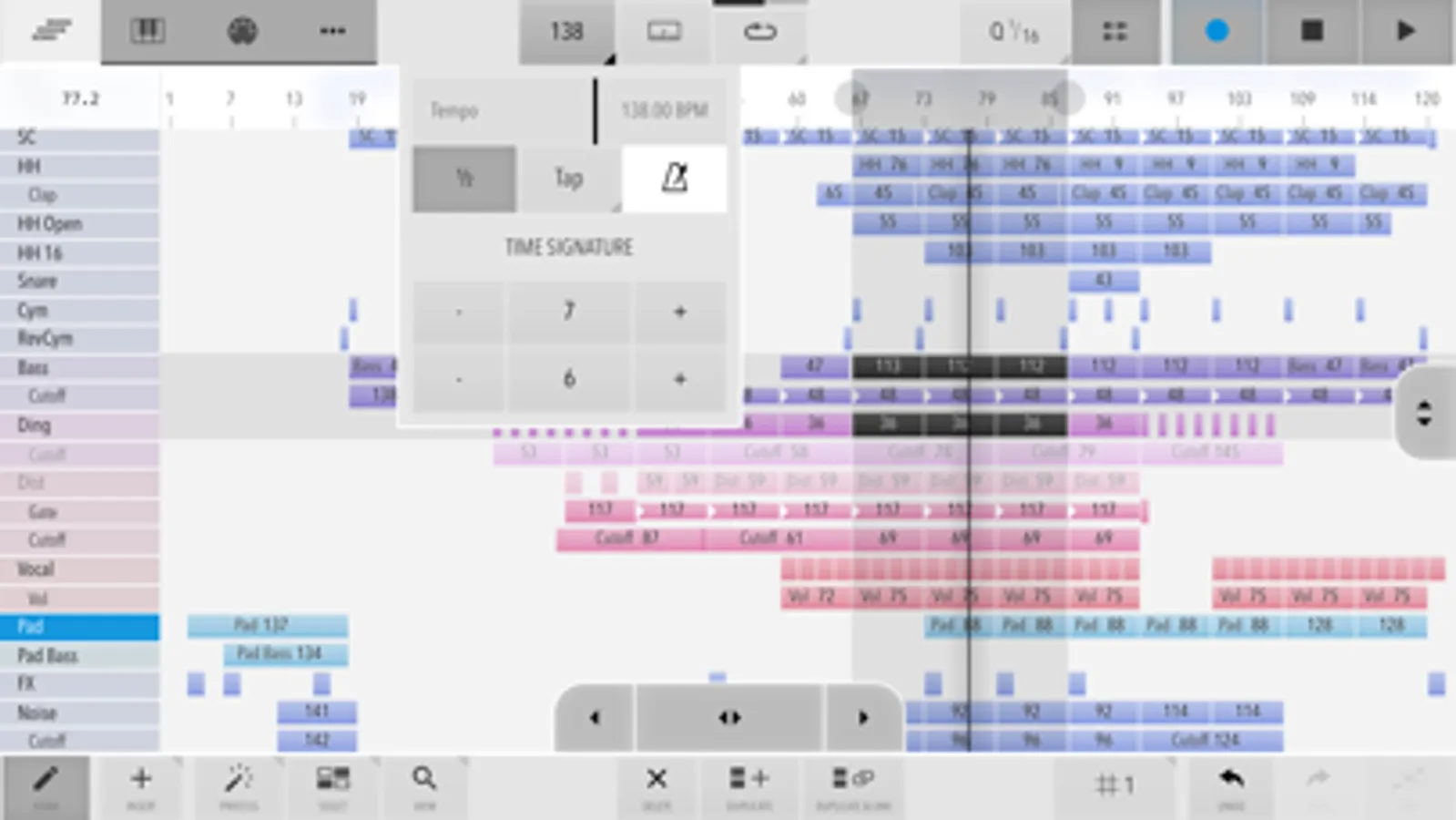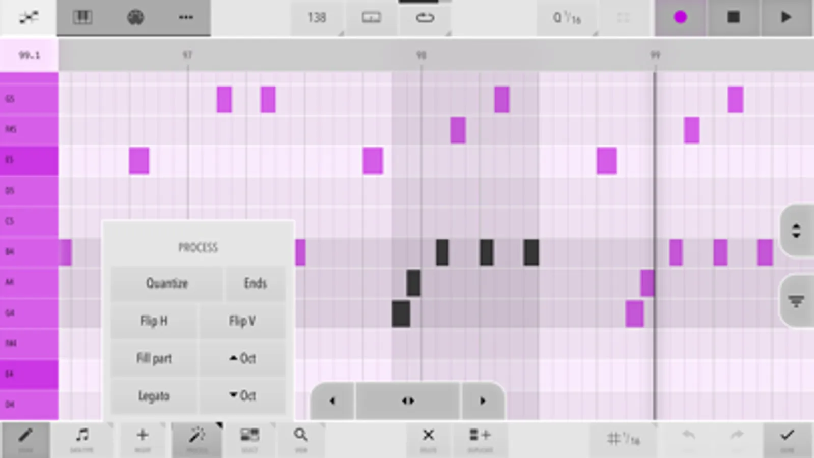 - Smart Draw mode: Touch to create, touch again to delete, drag up/down to transpose, drag left/right to change length