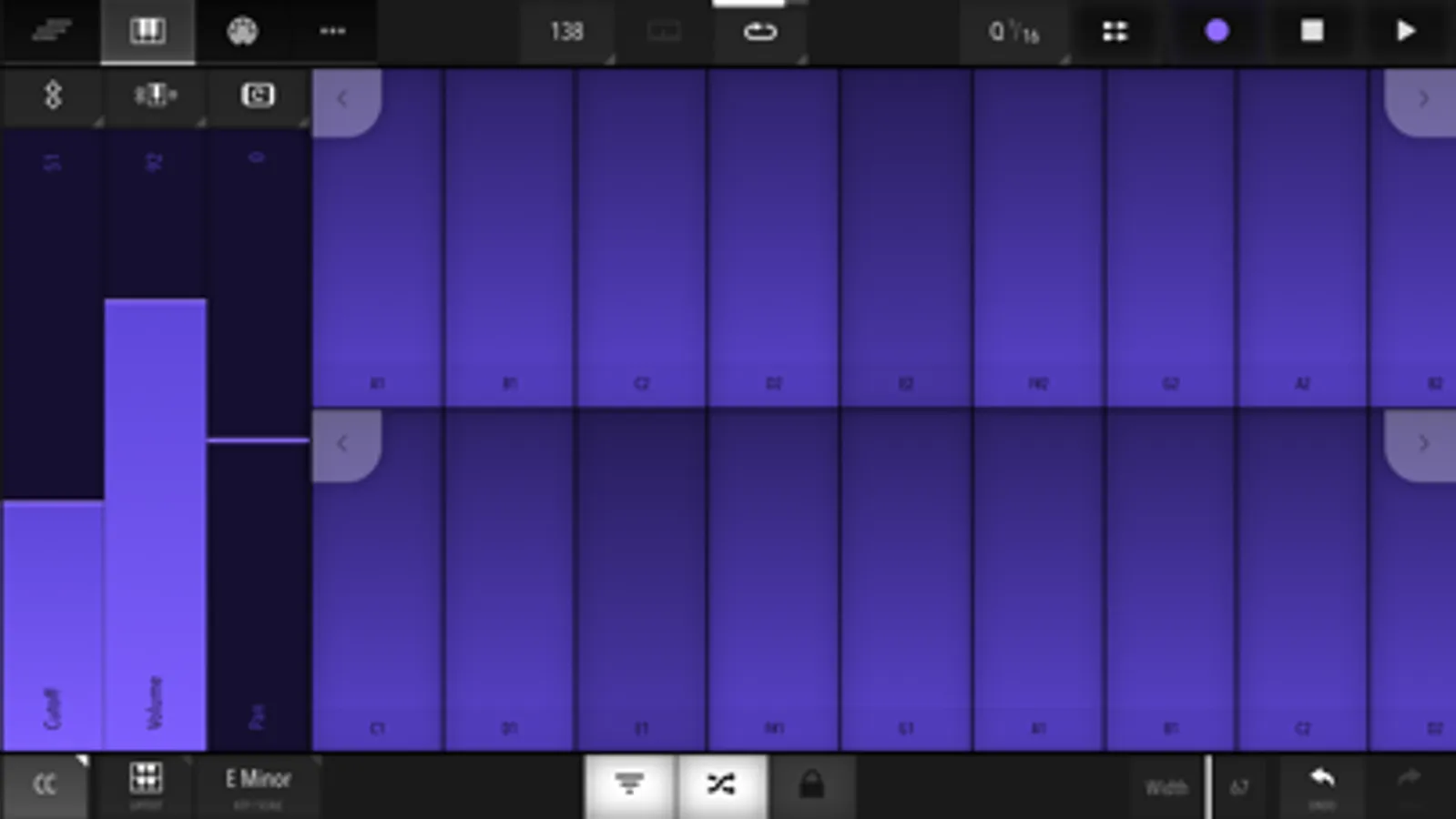 - Controllers can be moved by sliding (ribbon), device rotation (up to three axes at once), like a button (sustain pedal, "trance gates"), or by touching the keys at different vertical positions. All highly configurable.