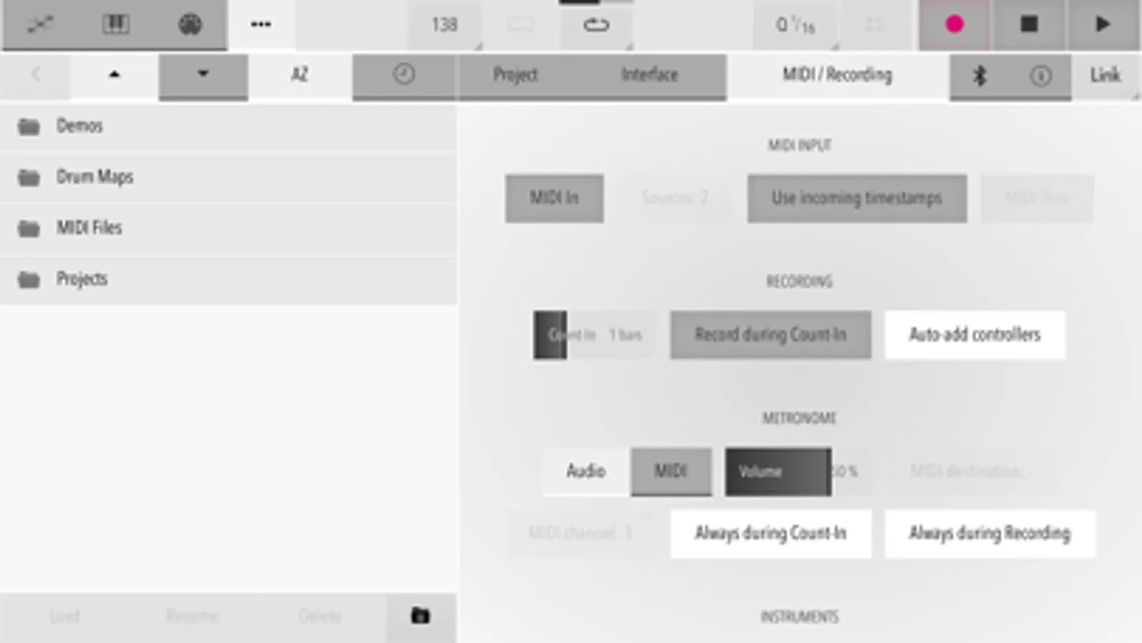 - Loading & Saving of instruments for re-use in other projects, 40+ factory presets included (In-App Purchase)