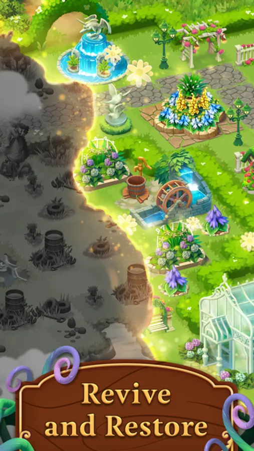 Relax with this unique mix of Merge and Match-3 Puzzles, let your creativity shine by fixing up the old garden, and meet exciting new characters as you progress through the story that will take you through the ages!