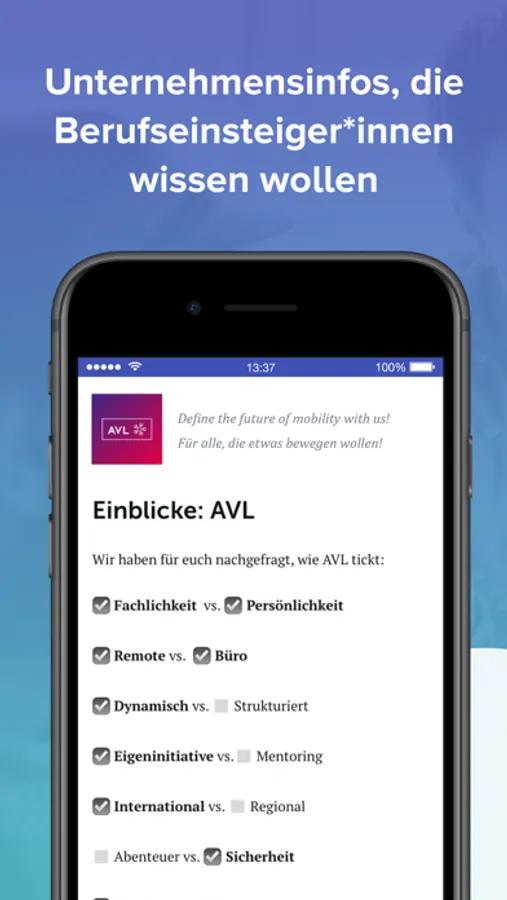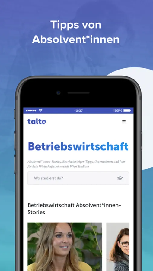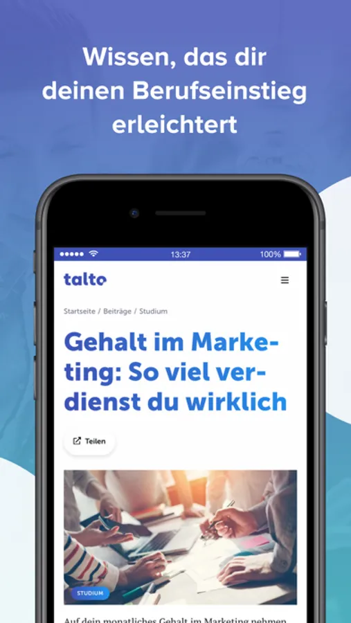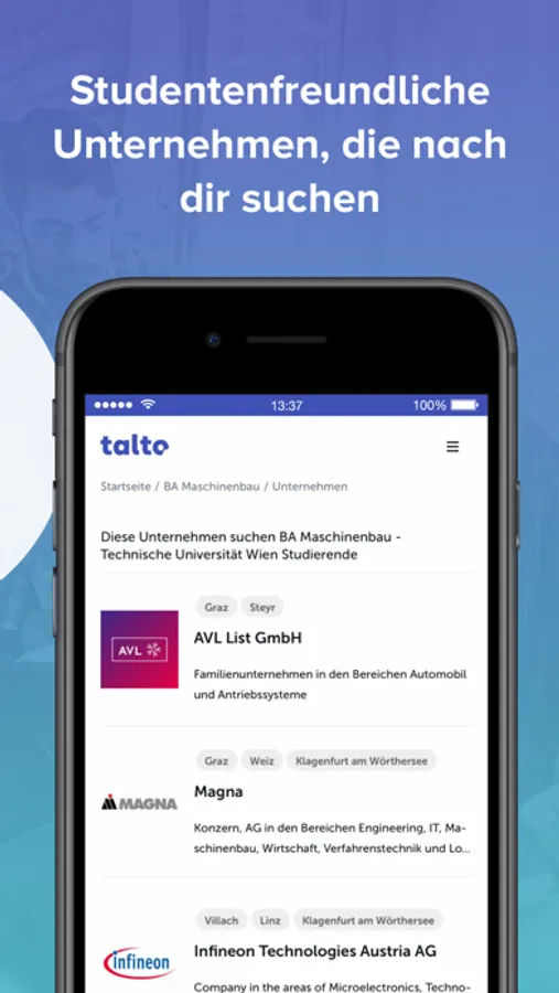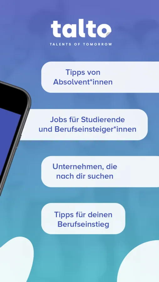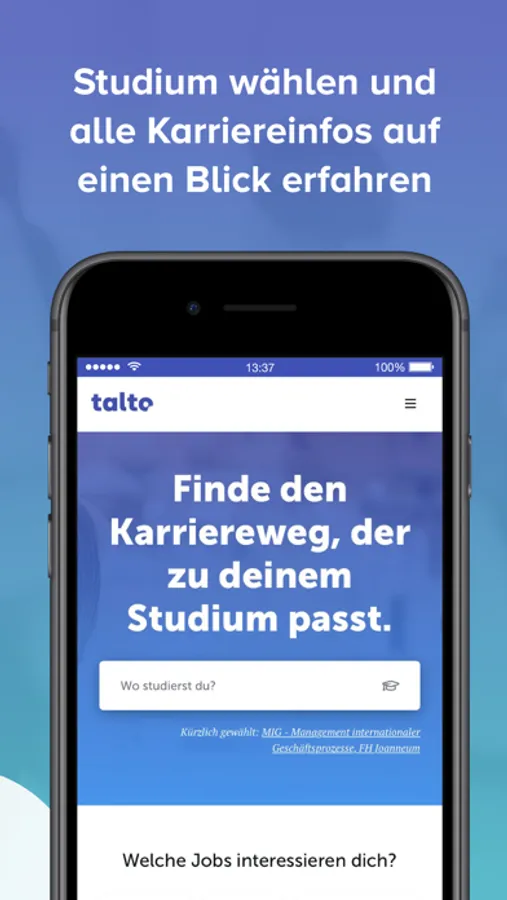 Find quickly and simply the job and company that really fits you. On Talto you can access relevant, current job postings. Stay curious with us and look forward to the best student jobs, internships and entry-level jobs. Mobile job search is finally here!