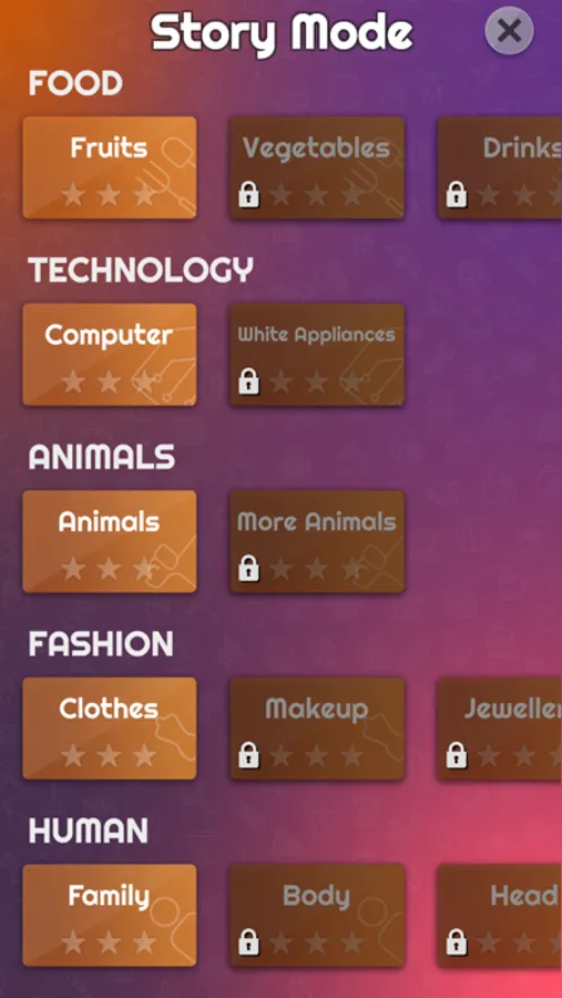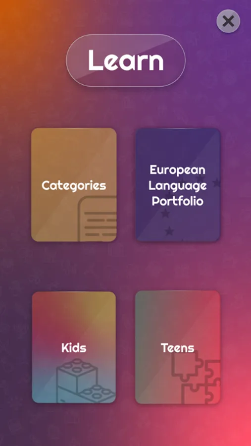 To begin, you can learn the words by going through the Story section, if you want, you can improve yourself in the English vocabulary category of the European Language Portfolio A1, A2, B1, B2, C1, C2 or choose the category you want among the other categories and start the game from the Play section. The most used English words in everyday life were used in creating categories!