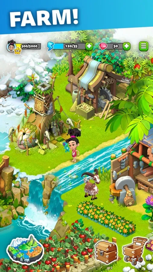 After their previous city had been destroyed by a volcanic eruption, help this family build a thriving town, all while looking for a way to reconnect with their family and beloved tribe. In this farm game, their world might seem ancient and alien without modern day technology, yet their daily family life and relationships are very relatable in today’s world.