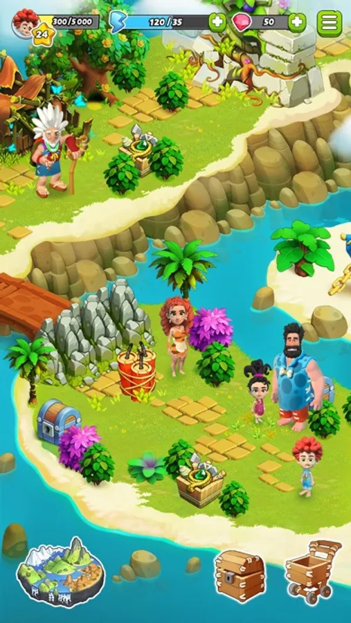 - Get to know the family better and guide them through exciting quests and life stories in this island game