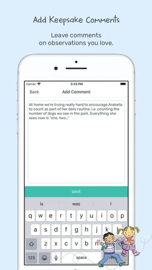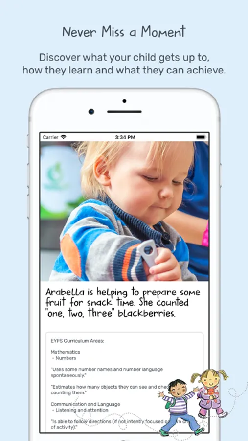 View individual observations including text, photo, audio and video logs of what your child is achieving at their early years setting. Add comments and ‘like’ your favourites.