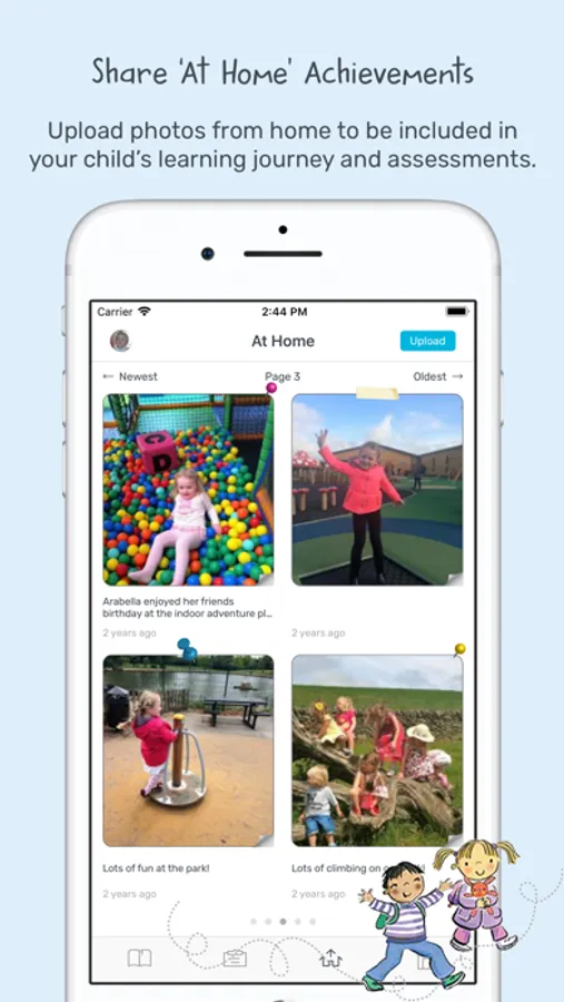 Share the achievements your child makes at home. Upload photos and comments for their school, preschool or nursery to see and review.