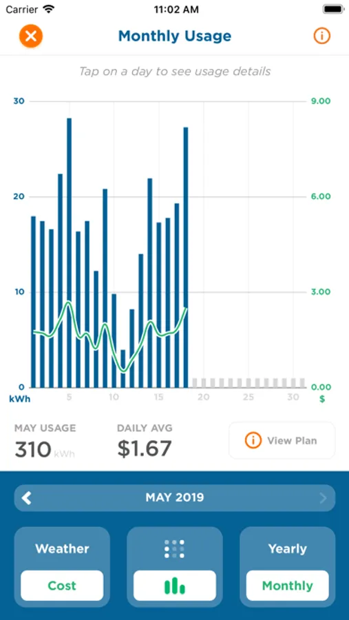 * Track your usage with interactive, customizable graphs that show trends, projected electricity costs and weather impacts in your area.