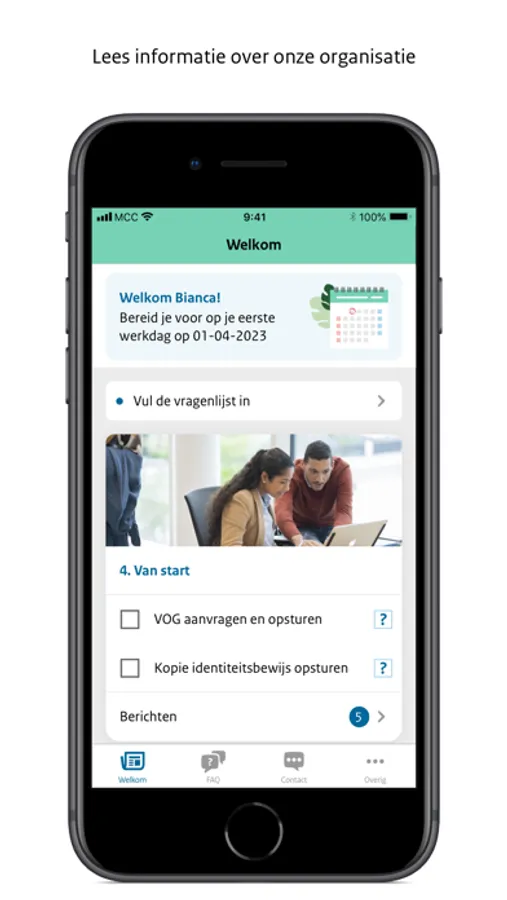 We helpen je graag bij een goede voorbereiding. In deze app vind je informatie over praktische zaken die je kunnen helpen bij de start van je nieuwe baan. Ook kun je hier jouw nieuwe werkgever alvast wat beter leren kennen.