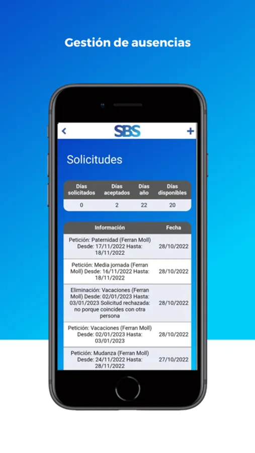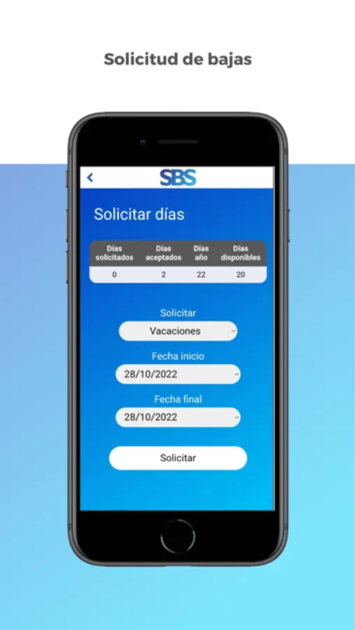 Desde SBS Presencia + el trabajador podrá solicitar las vacaciones desde su panel, a la espera de que el administrador las acepte o deniegue en función de las necesidades de la empresa.