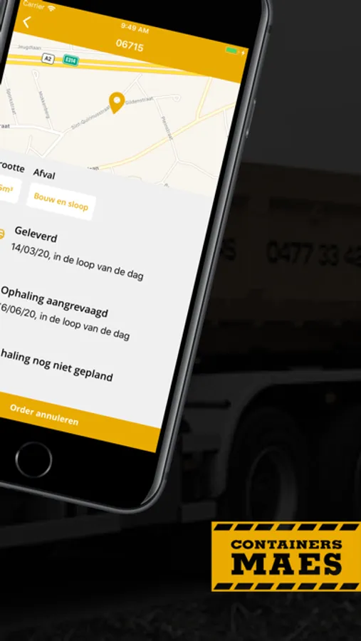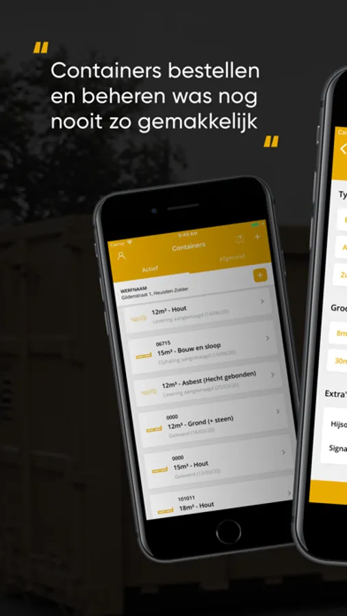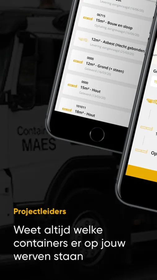 Binnen de app van Containers Maes krijg je een overzicht over jouw werven met containers.