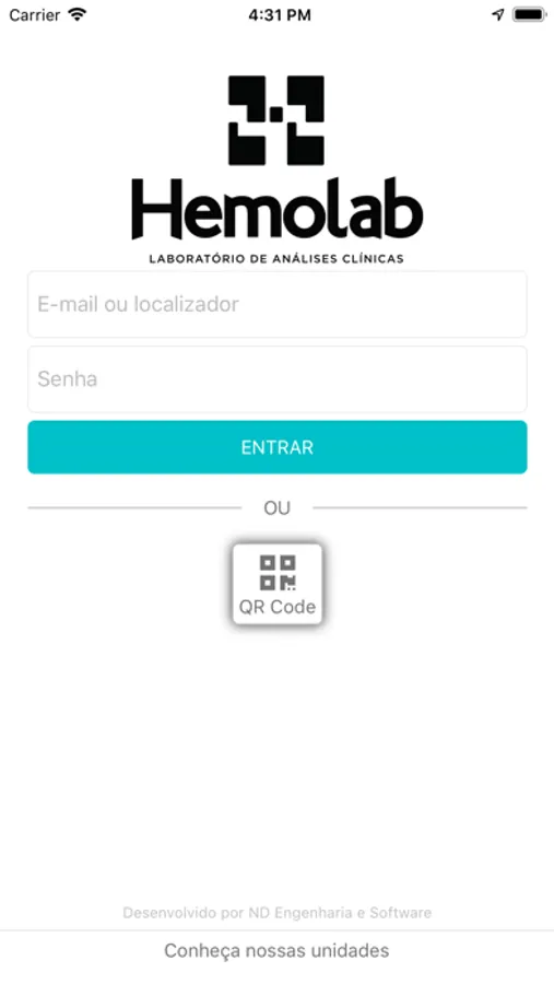 IMPORTANTE: Para usar o aplicativo basta apenas ler o QR Code ou digitar o localizador e senha contidos no comprovante do cliente recebido no laboratório.