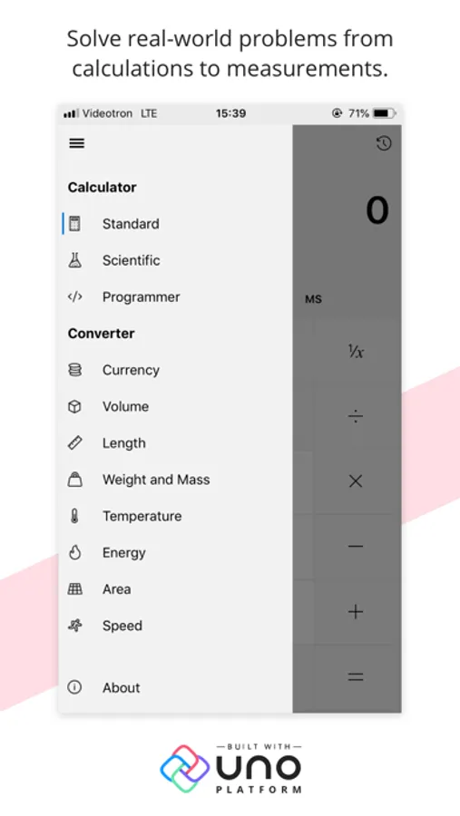 The powerful Uno Calculator receives a makeover from Uno Platform with a wide variety of features. From calculations to measurements of size, temperature, speed, energy, currency and more, the calculator is a powerful one-stop-shop for all calculation-related needs.