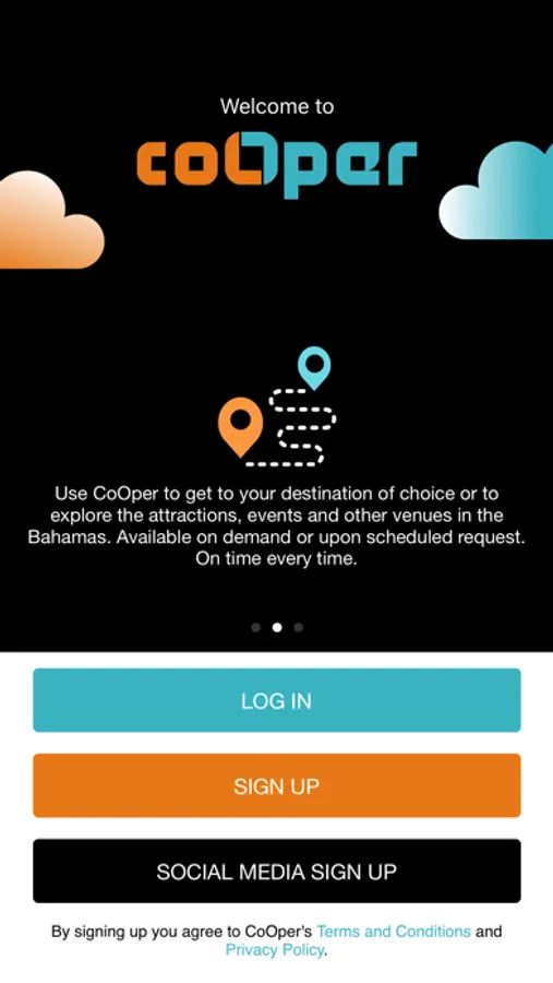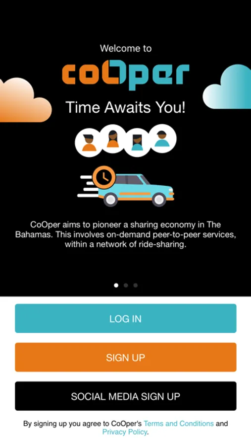 CoOper is a mobile app that aims to pioneer a vibrant on-demand peer-to-peer ride-sharing network. CoOper's main mission is to help build a better Bahamas and to reduce traffic, which can create an eco-friendly environment. Bahamians, residents and visitors who wish to engage in CoOper will experience fast performance, and a high degree of reliability.