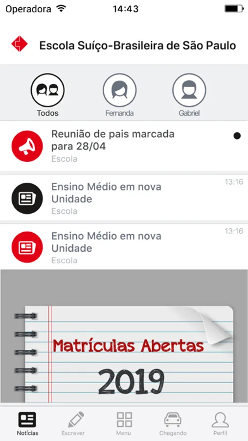Com este aplicativo, os pais, responsáveis e professores poderão receber as últimas informações da escola, as notícias do dia a dia dos seus filhos e o calendário de atividades escolares.