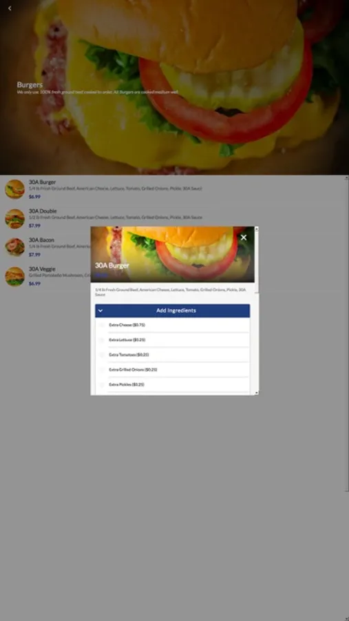 Now you can order online and skip the line! Pick-up and delivery options, rewards and more. Install the 30A Burger App for online ordering, exclusive offers & coupons and more, right on your mobile device.