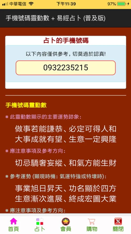 風格易經手機號碼占卜軟體,是一套結合靈動數與易經卜卦兩項特色的占卜軟體,本軟體能依據您目前所持的手機號碼靈動數,推算出此手機號所帶給您的事業或工作及運程之影響。本系統除了會告訴您目前的狀況及原因,更會提供給您相對應的解決參考方向,同時還能讓您在每次心中有困惑,或想要針對所問事件得到一些參考用對策方案時,藉由占卜時取得時下最熱門神準的易經卜卦卦象,透過本軟體淺顯亦懂的白話文讓您輕輕鬆鬆看懂卦象及解釋文,進而獲得所求問題的疑難排解參考方向。