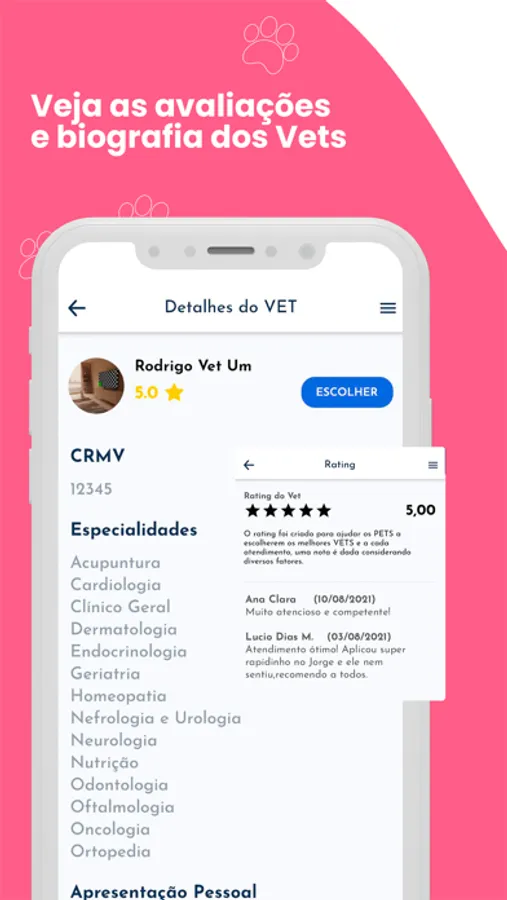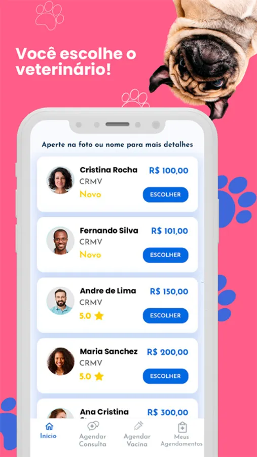 - Você acessa todas as informações dos VETS disponíveis e escolhe aquele que mais gostou;