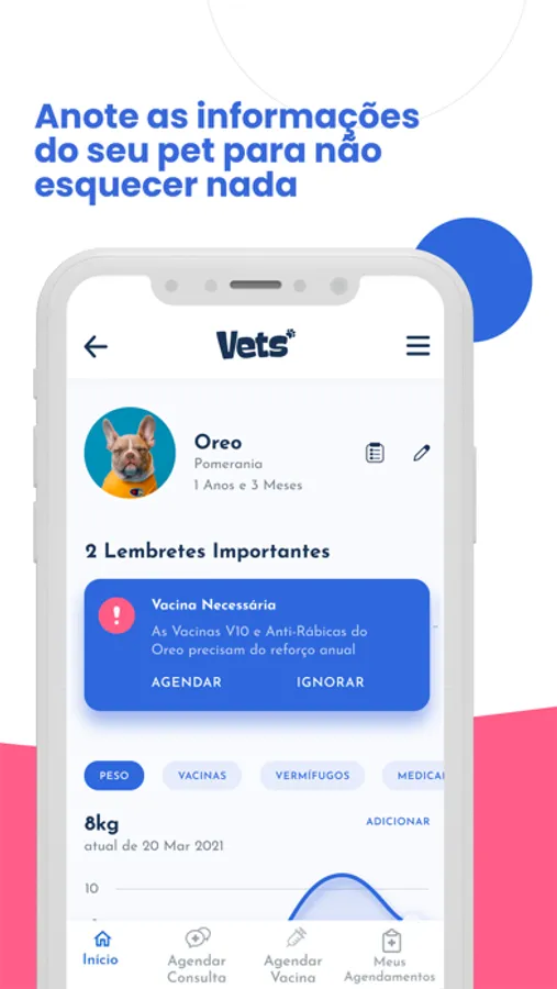 - Todas as informações do seu PET são armazenadas para as próximas consultas;
