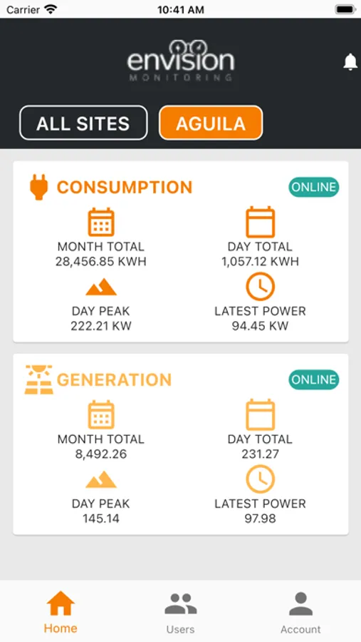 Using your provided Envision account credentials, easily access your facility's energy data straight from your phone!