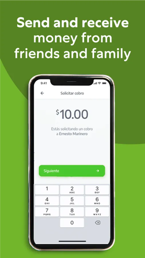 Make payments to other people through the app, either from user to user or to people who are not registered yet, with just their phone number and email.