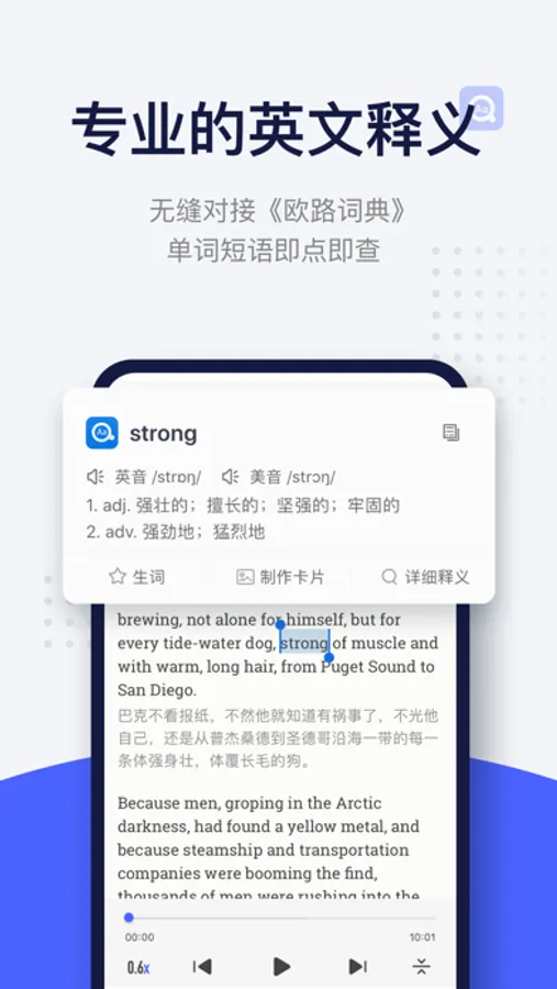 划词搜索:与《欧路词典》无缝集成,长按查词,即指即译;