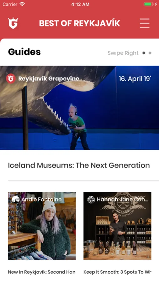 The app also includes event listings such as concerts and art shows for Reykjavík which is updated daily by your friends at the Reykjavík Grapevine to make sure you don't miss out on the best events while in Reykjavík.