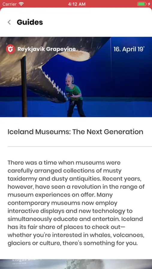 The app also includes travel guides which are updated every week by The Reykjavík Grapevine.