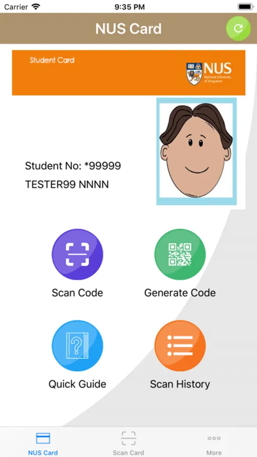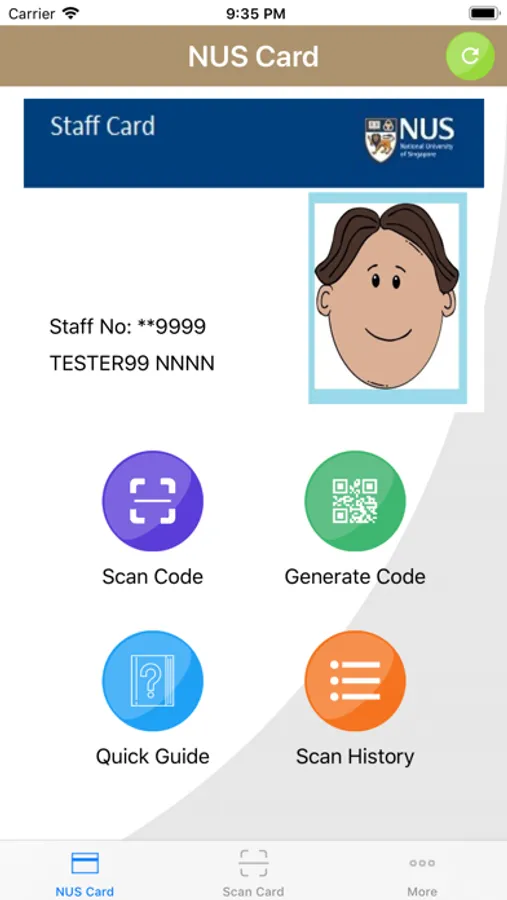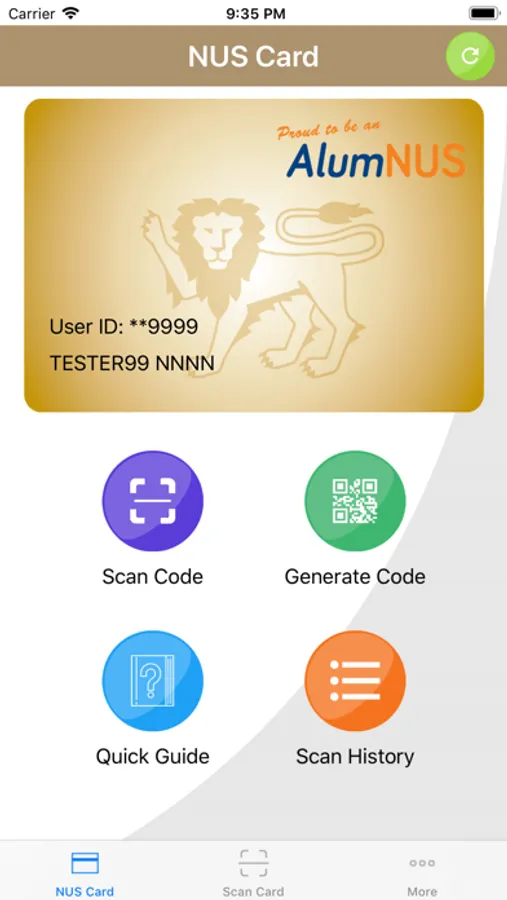NUS Card is a mobile app that displays a digital version of the NUS cards for students, staff and alumni.