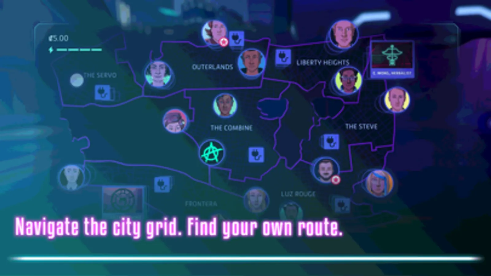 Find your own route: Neo Cab features a branching narrative with pax stories written by Leigh Alexander, Kim Belair, Bruno Dias, Duncan Fyfe, Paula Rogers & Robin Sloan.