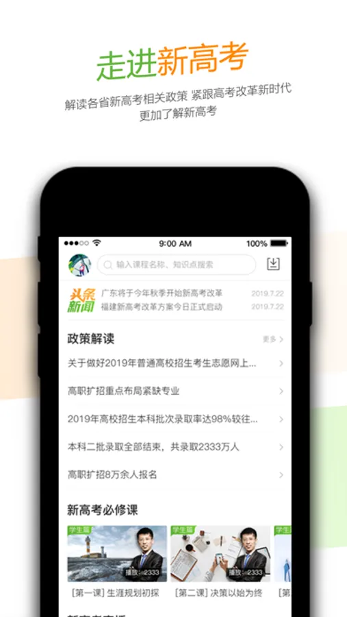 同步课程视频,从高到高三,九大学科,各章节、各单元重点知识点都有名师同步讲解。重点、难点、考点详细剖析,助力高考。