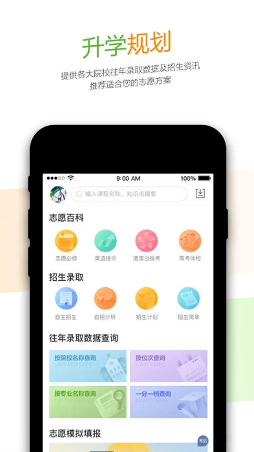 升学宝库涵盖2800所院校、1300个专业,960个职业,海量信息助你检索,优质院校等你来考!