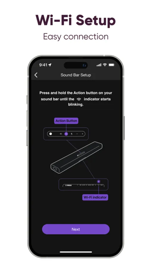 The Sound Bar Controller app provides easy operation for select Yamaha Sound Bars using your iPhone, iPod touch or iPad.