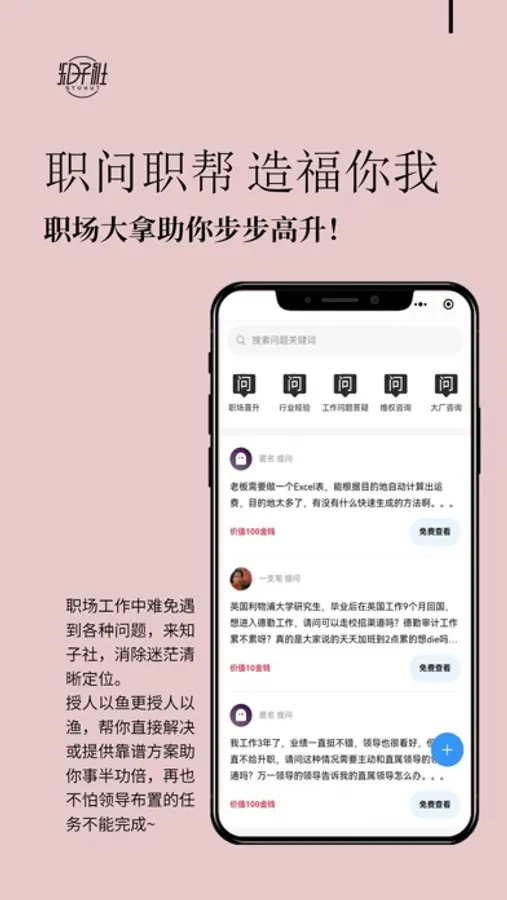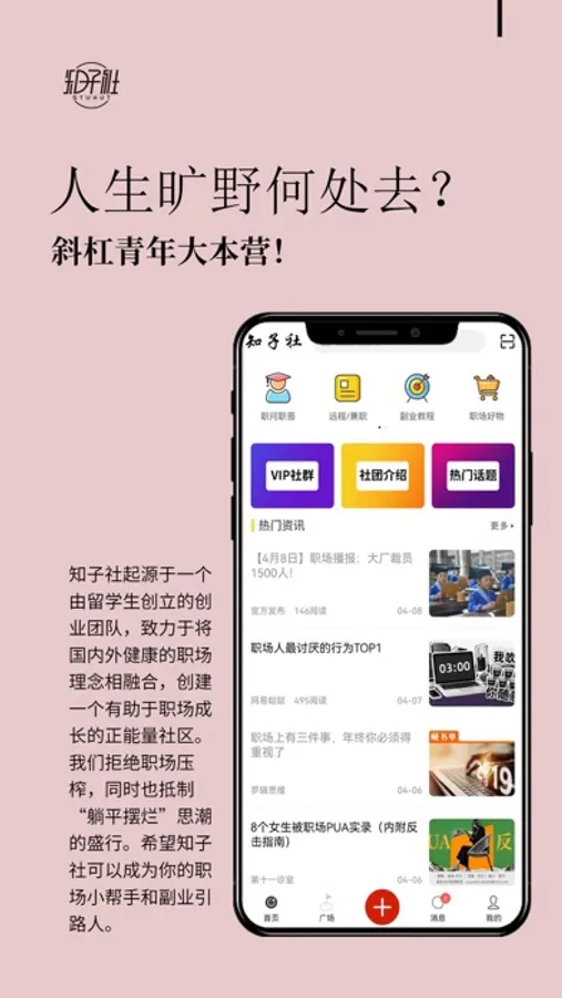 知子社起源于一个由留学生创立的创业团队,致力于将国内外健康的职场理念相融合,创建一个有助于职场成长的正能量社区。我们拒绝职场压榨,同时也抵制“躺平摆烂”思潮的盛行。希望知子社可以成为你的职场小帮手和副业引路人。