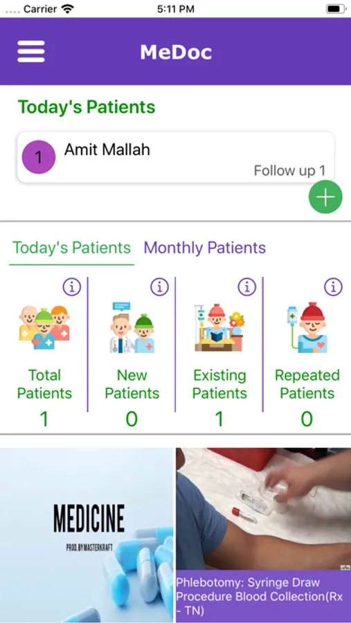 As shown in provided screenshot, we added one patient.