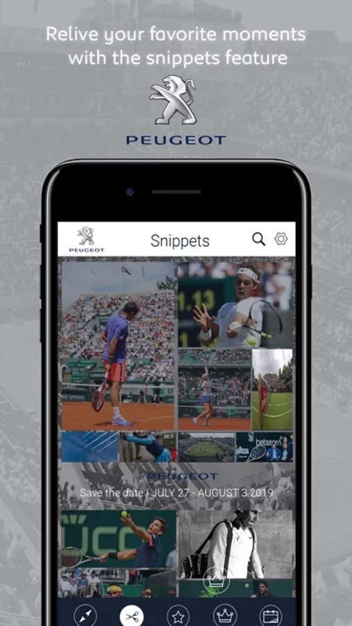 - Flip through the most iconic snippets of other tennis fans in the Peugeot Generali Open Tennis App "Hall of Fame"