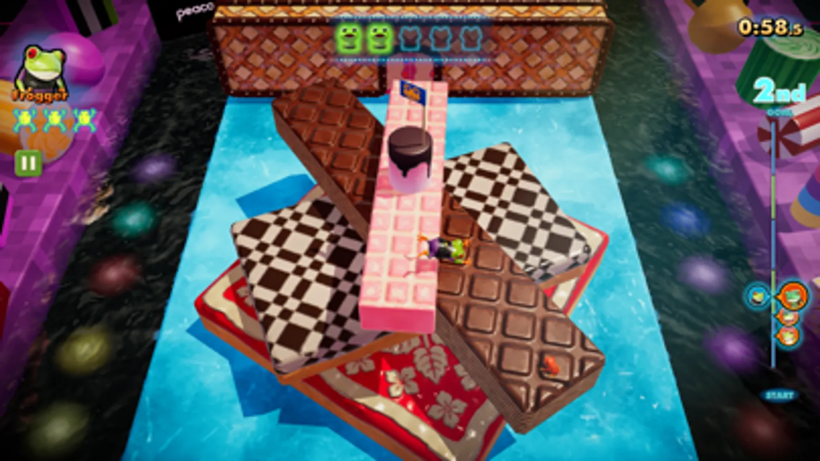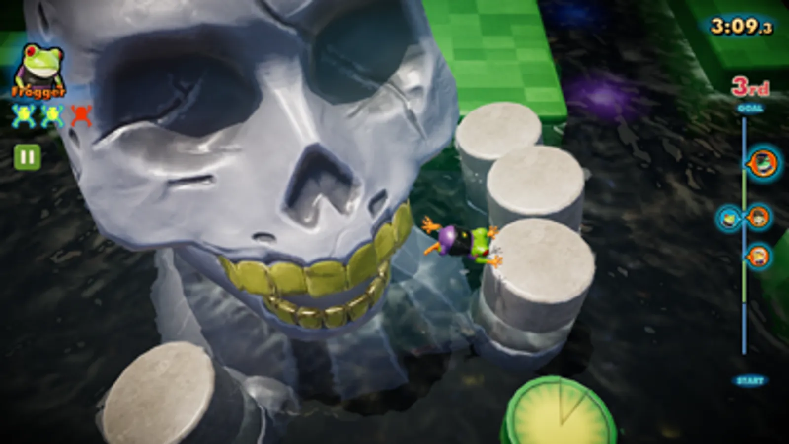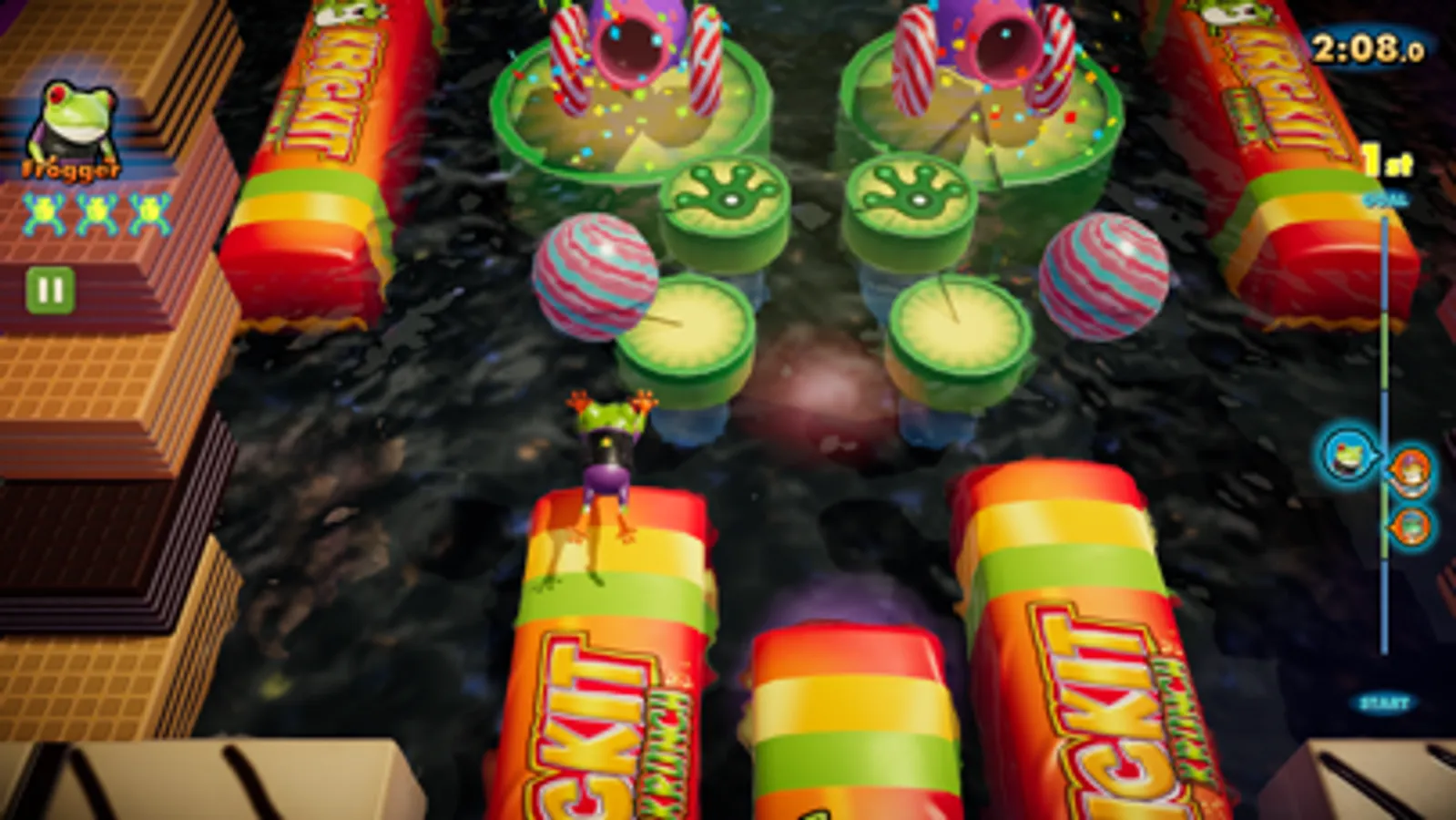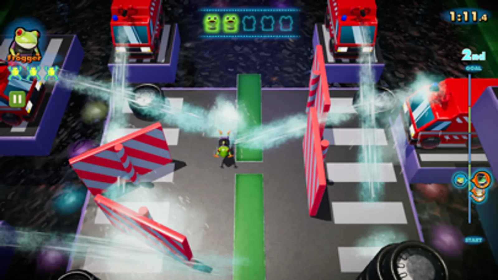 The houses may be filled with danger, but Frogger is the only one who can rescue the froglets.