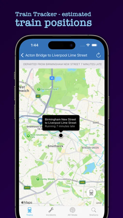 Not for use in safety critical applications, level crossings, etc. Train position is estimated from latest available timing point data and may be incorrect. Care must be taken during use. Other trains may be present that are not indicated in the AR or train tracker mode of the app such as trains not stopping at the nearest station and also freight trains. Freight and non passenger trains are not displayed in the app. For your safety do not use your phone while you walk and take extreme care using the app near trains and railways.