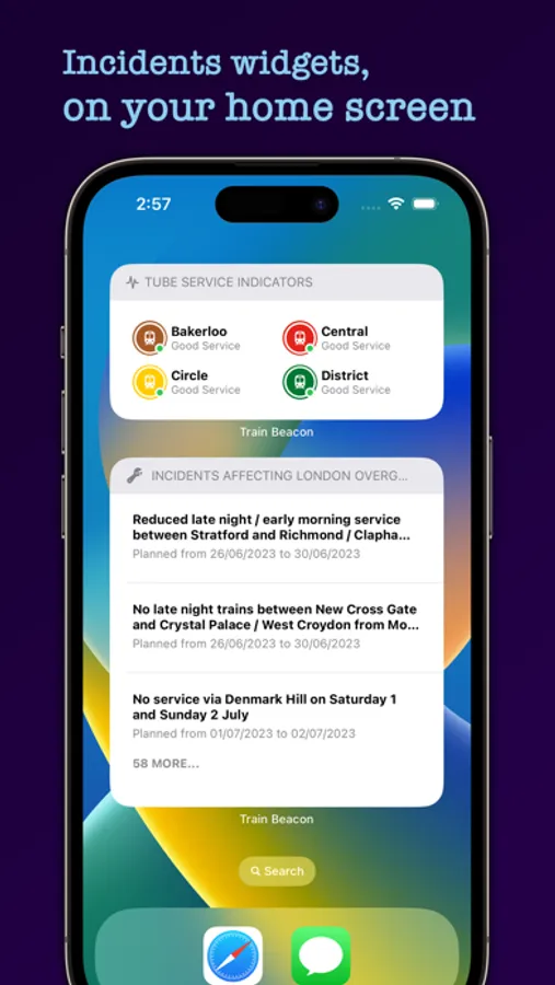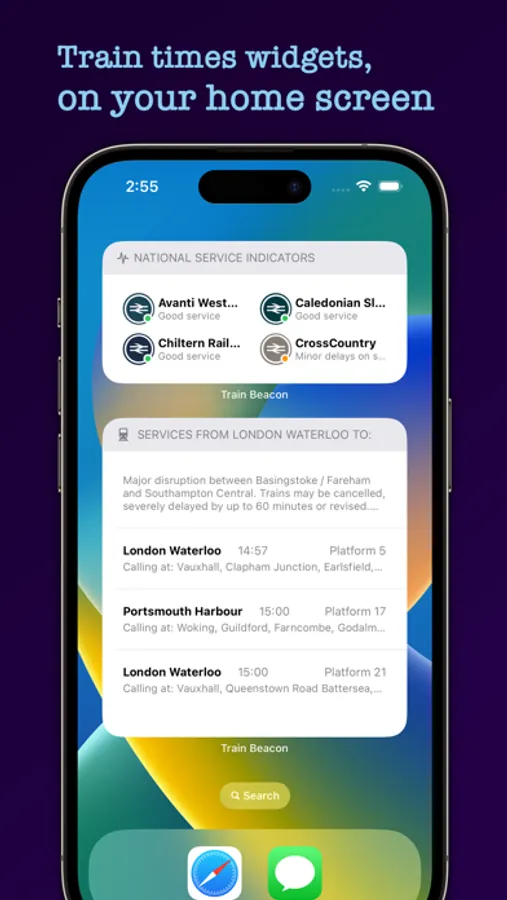 Easily see train times, cancellations, London Underground service indicators, rail incidents and service status on your homescreen.