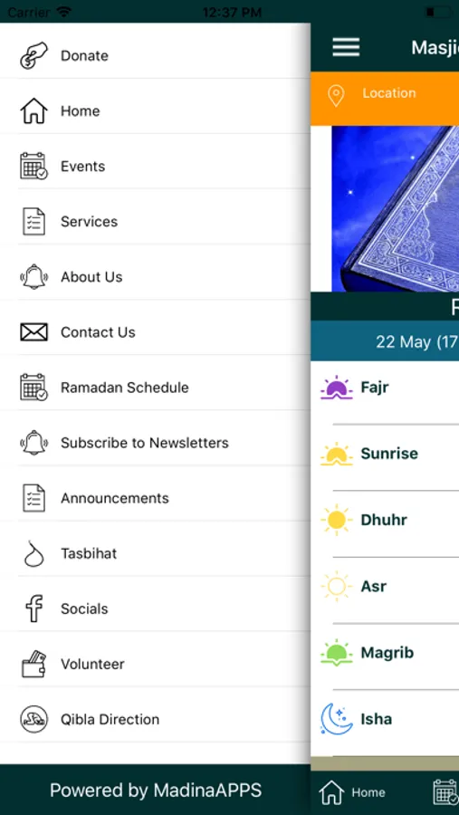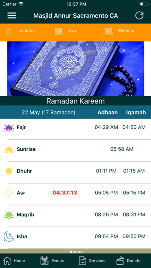 Until 1982, Muslim students and residents of Sacramento had to perform their prayers in a rented apartment. In 1984, the Muslim community purchased a 1.34-acre property with a small house, which served as a place of worship. The Masjid Annur Center (MAC) presently has five daily prayers. During Friday (jummah) prayers over 400 men, women, and children gather to worship. Various forms of Zakaat are collected and distributed on a regular basis. Social services is the area of births, deaths, and marriages are part of the community support provided.