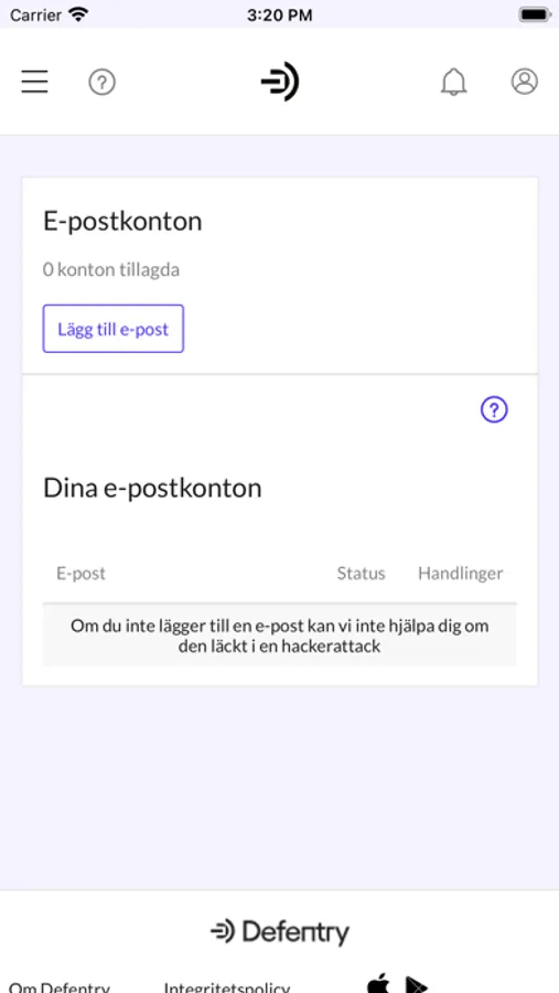 Defentry is looking for the use of your personal information to, with proprietary technology, warn you in case of threats of ID fraud, ID theft and breaches. If your personal information, such as your SSN, mail address or name, is used or altered, we will alert you. If your financial information, your credit cards for example, are sold on the black market online, we will alert you. If your account information, such as email addresses and passwords are leaked, we will alert you. If you need help to resolve any issues, or if you're ever subject to an ID theft or fraud, we will guide you to resolve it. Defentry and its application is developed out of long-term experience and knowledge within IT security and digital behavioral science. With thorough analysis and a highly developed technology, Defentry is able to deliver a state-of-the-art ID safety solution with qualitative data and real-time alerts.