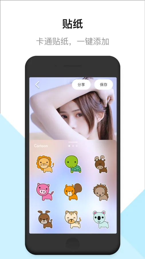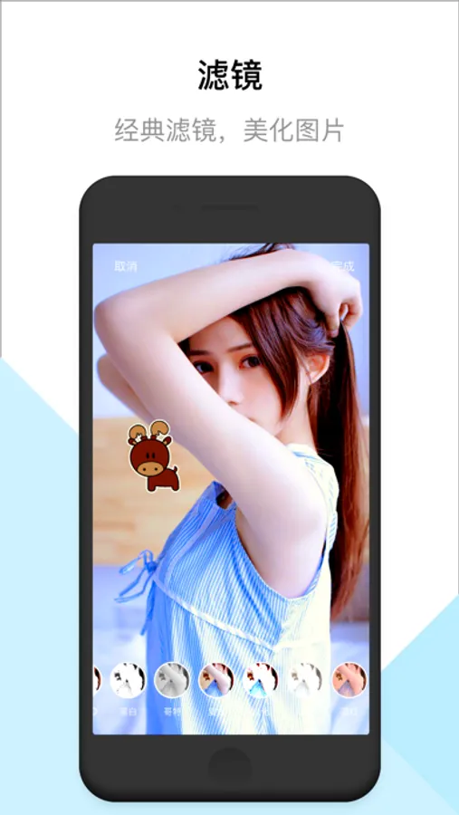 更有可爱的卡通贴纸,涂鸦笔,文字气泡,滤镜,让你的照片更多样。