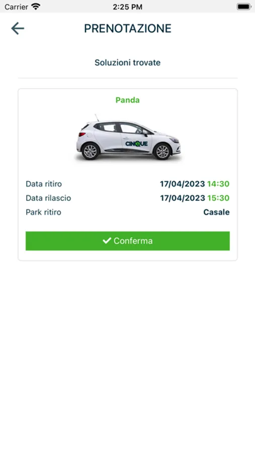 CinQue è facile: iscriviti e, ogni volta che ne hai bisogno, prenota l’auto che ti serve, per il tempo che vuoi (da un’ora a più giorni consecutivi) e per andare dove vuoi: indica sempre il parcheggio prescelto, l’ora di partenza e di arrivo. Arrivato al parcheggio apri le portiere inquadrando il QR CODE con la tua app: al termine della tua corsa potrai riportare l’auto in una delle aree riservate a CinQue.
