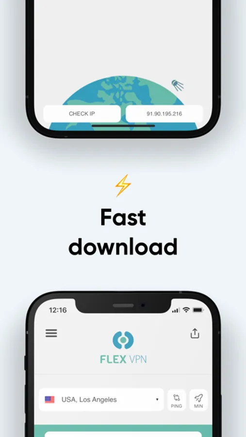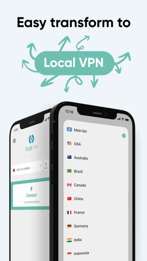 Flex VPN allows selecting a primary country where a VPN server is needed. By doing this, a user activates extra servers in a specific country and gets a button for a fast-track connection to servers in the selected country. E.g., if USA VPN is selected as the primary country in its settings, Flex VPN app will turn into a popular USA VPN – Fast US-based VPN app.