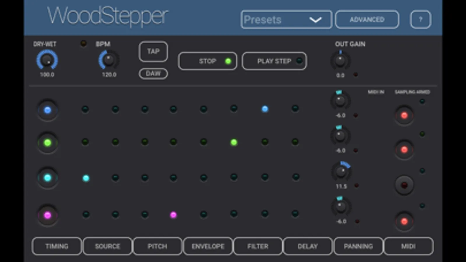 So WoodStepper can be used in any combinations of sequencers, synths and looper/samplers.