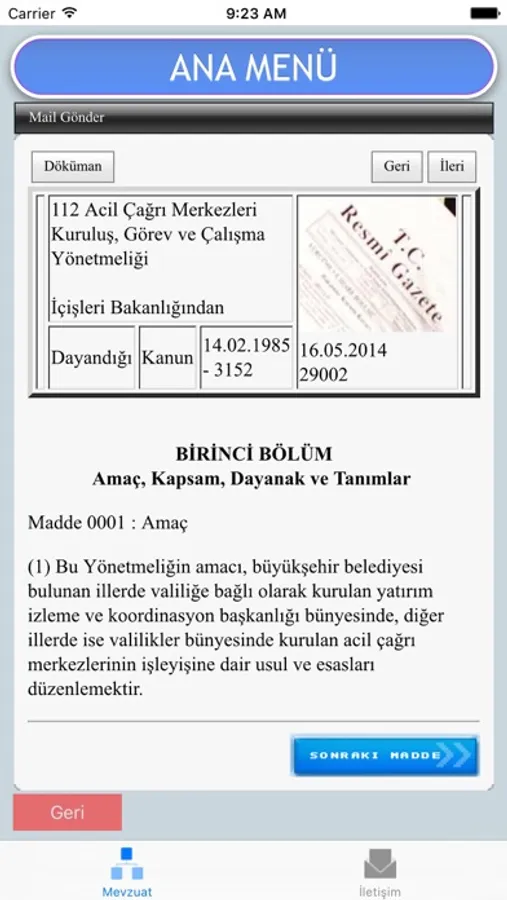 Palmiye Mobil Mevzuat Uygulaması ile ulaşabilecekleriniz;