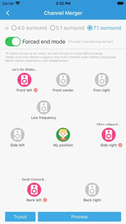 Supported channel type:mono, stereo, quad surround, 5.1 stereo, 7.1 stereo